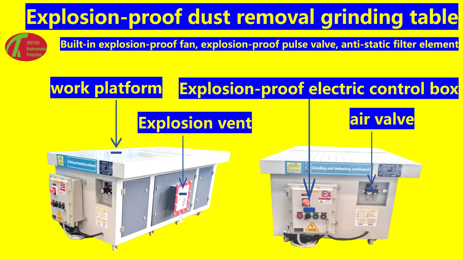 पीसते समय पंखा चला दें। पंखे की कार्रवाई के तहत, टेबल पर एयर इनलेट के पास की हवा और ऊर्ध्वाधर प्लेट के किनारे को चूसा जाता है। धूल युक्त हवा एयर इनलेट के माध्यम से फ्रेम में प्रवेश करती है, और हवा समान रूप से सोख ली जाती है और फिल्टर कार्ट्रिज द्वारा एकत्र की जाती है। फ़िल्टर कार्ट्रिज हवा में धूल को फ़िल्टर करता है, और धूल संग्रह द्वारा शुद्ध हवा को फ्रेम के नीचे वायु आउटलेट के माध्यम से वायुमंडल में छुट्टी दे दी जाती है।